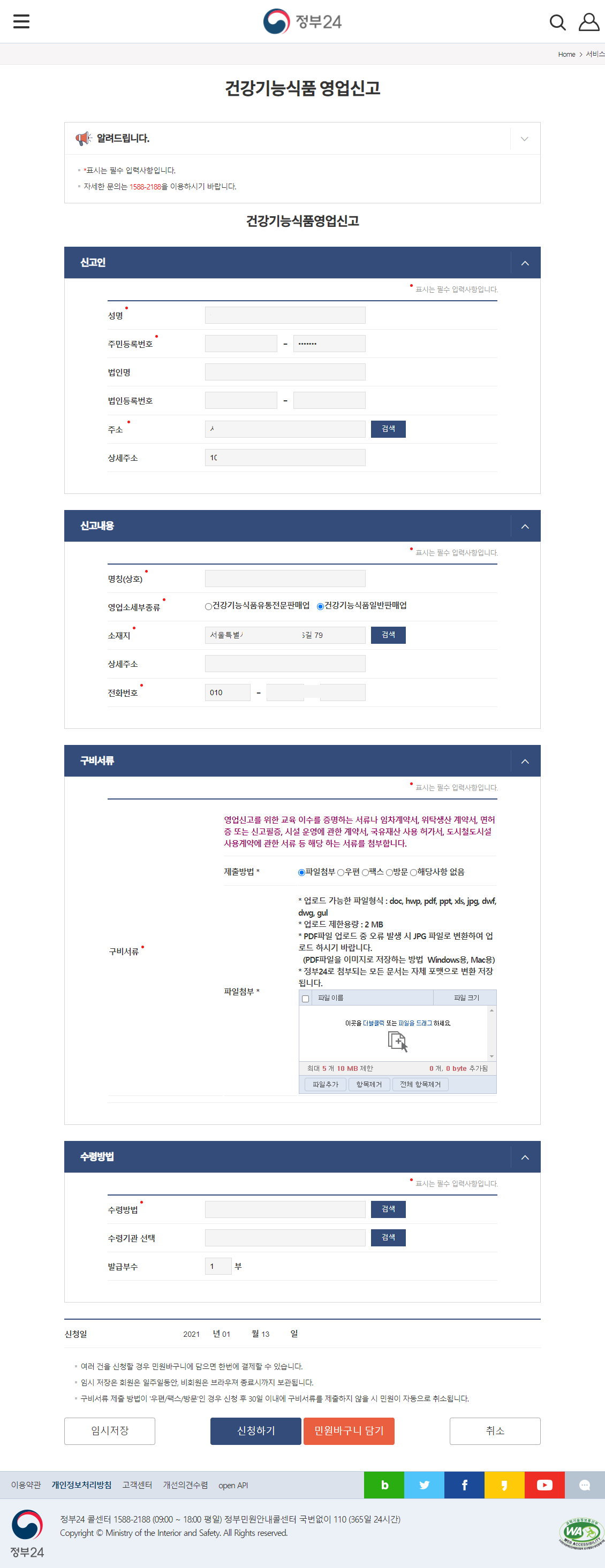 - 영업소세부종류 항목에서 '건강기능식품일반판매업' 으로 선택